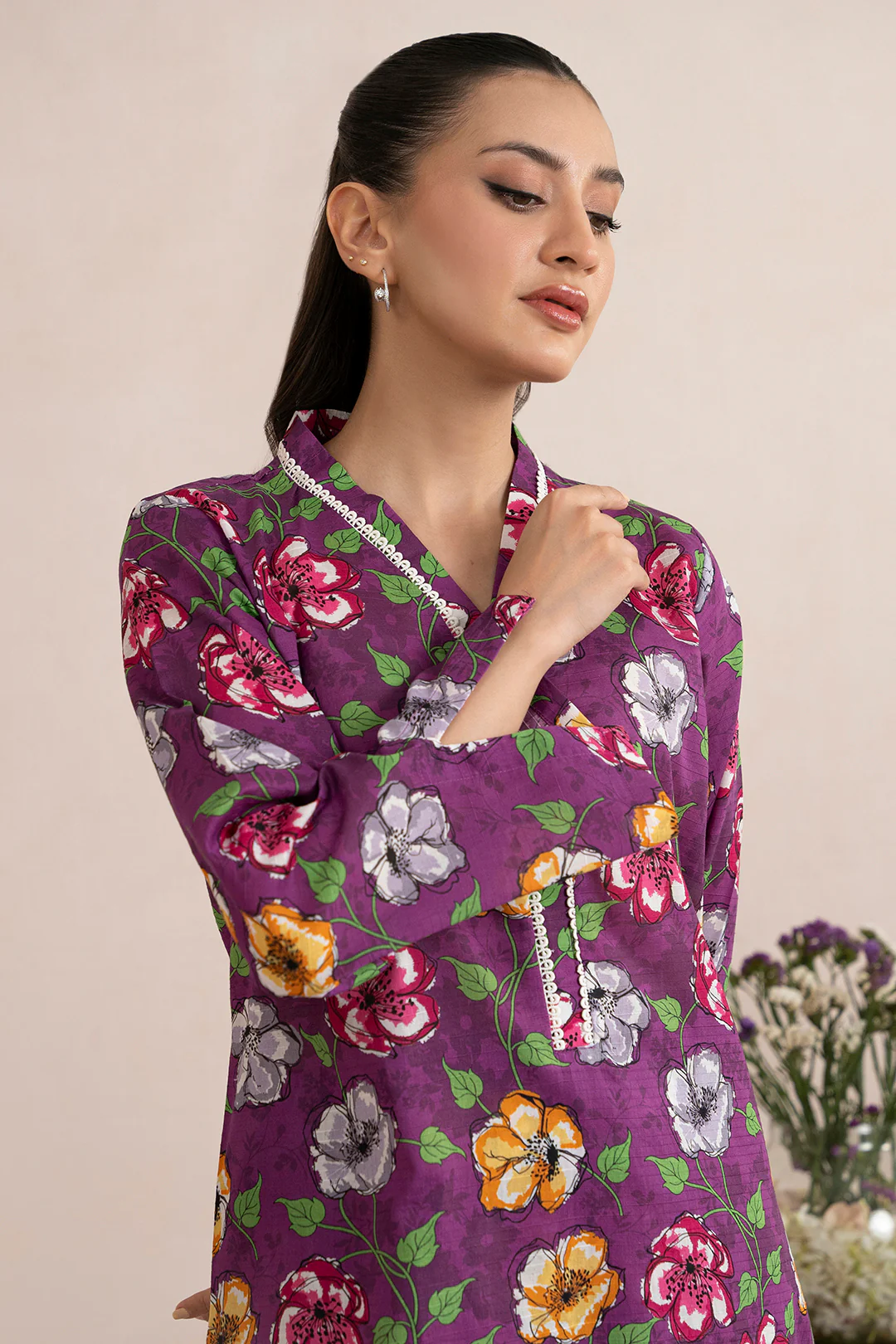 Expertly crafted for women, the Kurta Trouser - 1856 is a perfect blend of comfort and style. Made with high-quality Textured Lawn fabric, this printed Pret piece features a vibrant purple color that adds a touch of elegance to any outfit. Elevate your wardrobe with this stylish Kurta Trouser.